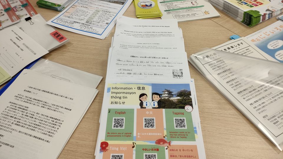 明石市にはビーチスポーツができる大きな会場が設置されている。以前、日本代表とウクライナ代表の国際親善試合があり、主催者から外国人に開催情報を知らせてほしい旨の依頼があり、サイトを通し案内をしたところ、日ごろから私達のサイトを閲覧してくれているウクライナ出身の女性から、お礼の連絡があった。彼女は簡単な日本語の読み書きしかできないので、この試合の開催情報は全く知らなかった。(チラシが理解できなかった。)「今、ウクライナは辛い状況にあり、自分も辛い思いをしている。ウクライナ代表の有志を見ることができて、元気をもらえた。情報を知らせてもらえなければ、私は大きなチャンスを逃すところだった。」とのことであった。私達が地域情報の発信に取り組みたいと考えたのは、「必要な人に必要な情報を届けたい。」という想いがあってのことなので、こういった声を聞けたのは、私達の活動がニーズにあっているからだと考えている。また、本事業の取り組み内容に賛同していただき、明石市が毎月2回発行している市政広報の印刷前の原稿を提供してもらえるようになった。これで、広報発行から大きな遅滞なく、外国人住民へ情報を届けることができるようになった。併せて、明石市役所政策部の協力を得て、本事業のチラシ及び、市政広報を翻訳し印刷した物を、市役所内の住民登録窓口、明石市の外郭団体である国際交流団体の窓口にも配架してもらえることとなった。行政としても、外国人住民への情報発信は懸案事項であったようで、今回作成した多言語プラットフォームには大きな期待を寄せてもらえているようだ。