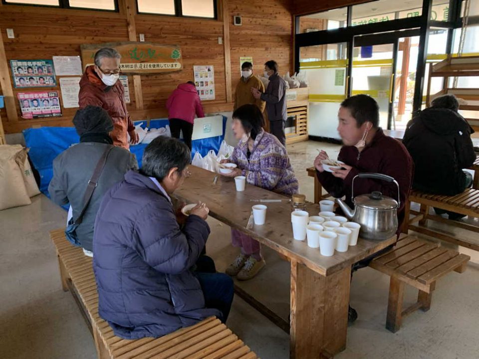 1月8日は昼食会として、ボランティアによる食事作りを行い、あわせて健康チェック、近況聞き取りを行った。
