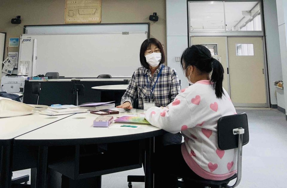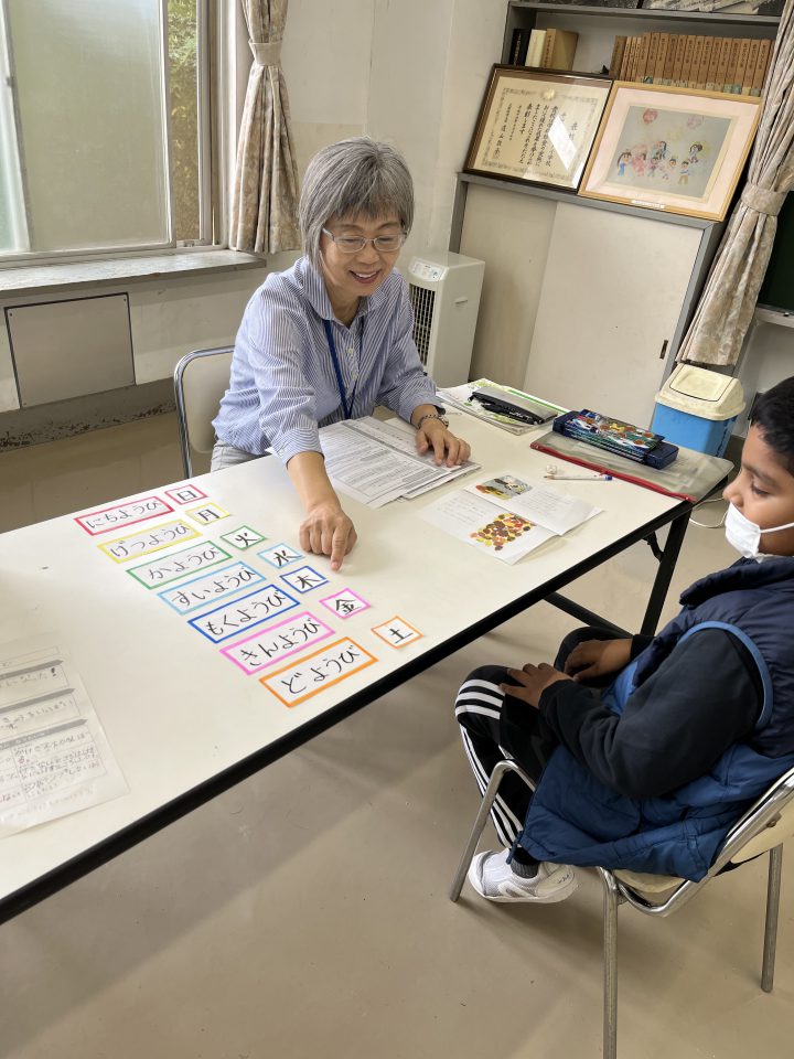 教室で黙って座っているだけから、友だちや先生とのコミュニケーションがとれるようになるための初期指導だが、さらに続く教科学習につながる日本語指導をこころがけている。