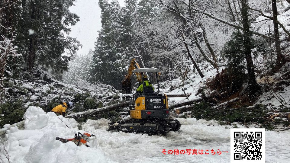 ・重機の活用で倒木や除雪を行い、第二拠点の整備を行い、地下水をくみ上げるポンプなどの簡易修理で水の確保も可能にした