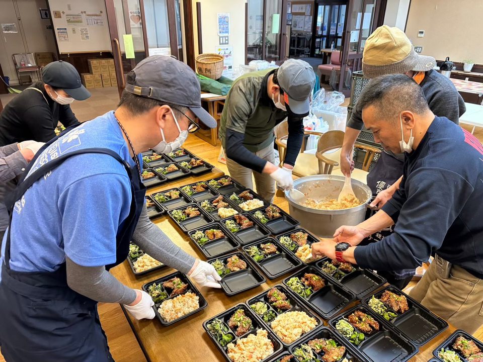 今回の活動は、昨年9月に台風13号による線状降水帯の豪雨災害により被災したいわき市の被災地から支援を募り、それを能登半島地震の被災地に繋ぐことを目的とし、2月と3月の2回、能登町と輪島市で、支援している方々へ向けた炊出し活動を行いました。 今回の活動に関しては、1月中旬にいわき市社会福祉協議会から能登町へ給水車として活用して頂くための入浴支援車の貸与を行うことに同行させて頂き、そこで当会の連携団体等からの聞き取りなどから現地状況やニーズの調査を行い、支援する側(地元の自治体職員、社協職員、支援者等)の支援の重要性と必要性から、これまでの災害で当会と連携をし、既に能登半島地震での支援活動を行っていた一般社団法人 OPEN JAPAN、また当会の連携先であるいわき市社会福祉協議会より応援派遣を行っていた関係から、輪島市社会福祉協議会を窓口として現地での活動を計画しました。 いわき市からは、これまで一緒に被災地支援を行ってきた個人や団体へ協力を要請し、支援金や車両、食材の提供を頂きました。参加者は当会のSNSやこれまで当会の研修会などに参加した方への案内を通じて募集を行いました。 炊出しのメニューにはいわきの味を召し上がって頂こうと、市の管理栄養士にメニュー作成を依頼し、メヒカリやカツオなど地元の特産品を使ったメニューで非日常を感じてもらう工夫し、弁当形式で、汁物や御飯は暖かく召し上がって頂けるよう現地で配食するように行いました。