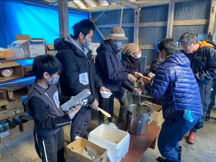 ・1/3珠洲市飯田小学校避難所でひのきしん隊と協働で、毎日炊出しを実施。