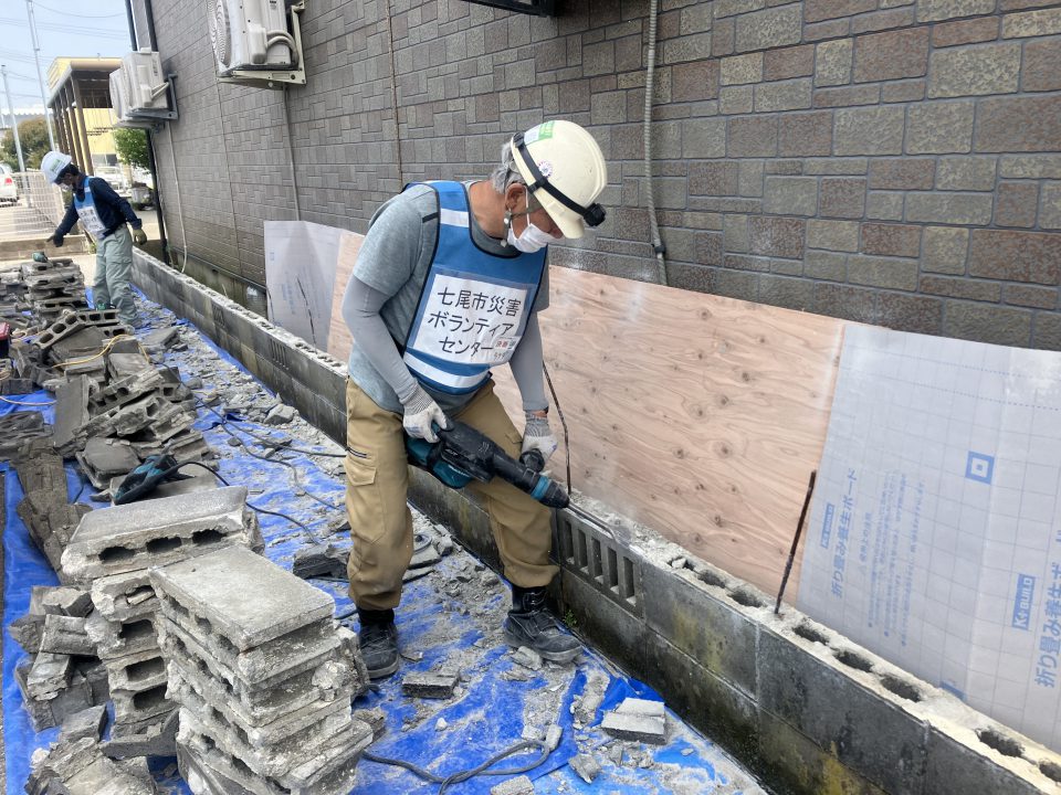 七尾市災害ボランティアセンターに集まった技術系(ブロック塀解体・家屋修繕等)の作業を行いました。