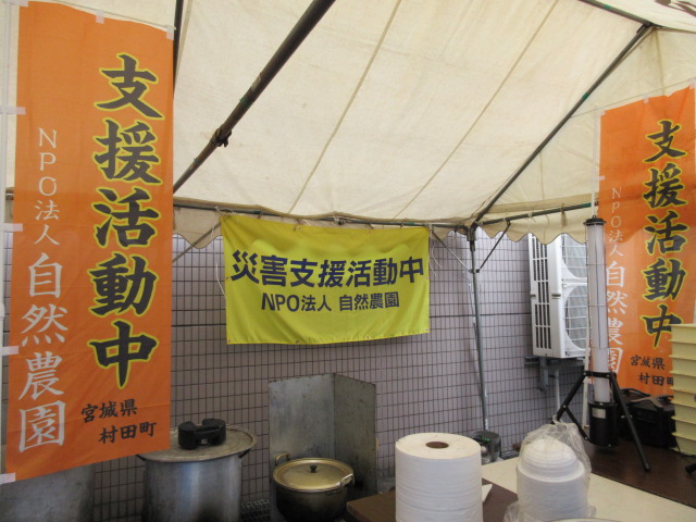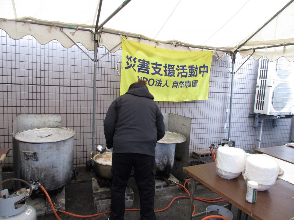 七尾市矢田郷地区にいる避難者に対して、宮城の食材をメインにした牛肉、うどん、肉巻きおにぎり等の炊き出し支援活動を行なった。