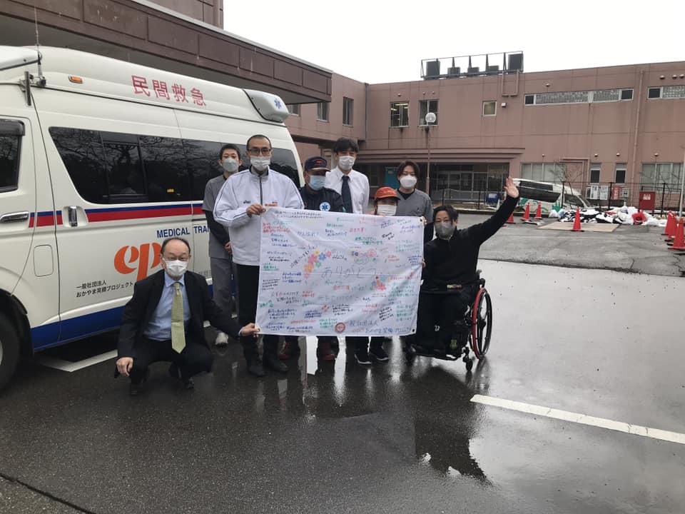 障がい者等の施設(9グループ)の被災している職員対して、継続的な業務が困難となっている現状の中で、継続して施設入居者の方の対応に関わり、災害関連死を出さないためにも継続して頑張っていただくために、手書きのメッセージカードと応援の旗、ハーブティー、果物の提供を行い2ケ月半がたっても入浴さえできない施設状況の職員さんに頑張る力を提供を行った。