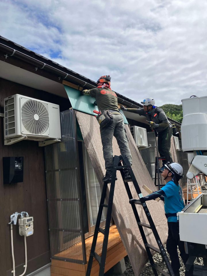 令和6年能登半島沖地震で被災された石川県珠洲市出の活動。家屋保全(屋根の応急処置や壁の養生など)、重機による道路啓開、ブロック塀の解体、貴重品の取り出し、家財搬出及び被災ゴミの搬出、建具の補正、仮設住宅の環境改善、能登豪雨以降の豪雨被害全般に対する活動。