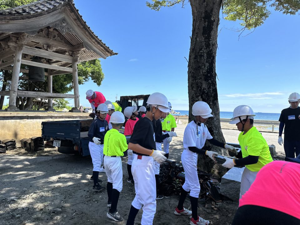 ・倒壊した寺院の瓦撤去支援