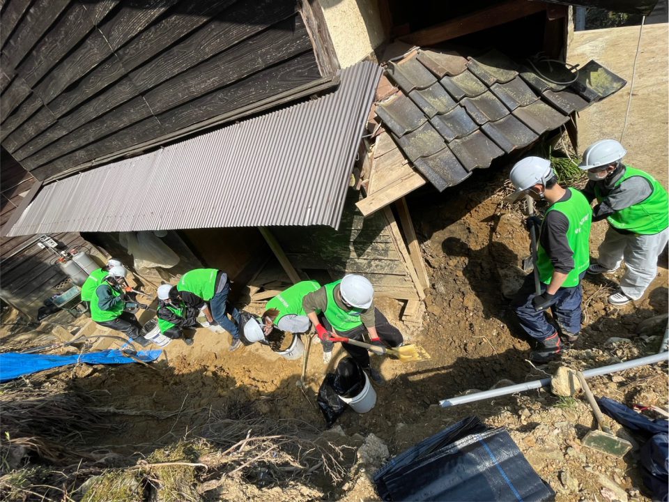 令和6年能登半島地震により甚大な被害を受けた石川県輪島市において、輪島市災害たすけあいセンターと連携し、全国の志ある大学生87名が2024年7月から2025年3月にかけて継続的な支援活動を実施した。主な活動内容は、被災した一般家庭や施設における家財・廃棄物の運び出し、室内清掃や泥出し、解体済み住宅跡地での貴重品の捜索、施設の清掃支援など多岐にわたる。また、令和6年9月20日からの大雨による被害に対しても、引き続き現地にて支援活動を実施し、屋外に流された布団の移動、浸水した倉庫からの物品の分別・洗浄、被災した工場での植木苗の植え替えなど、状況に応じた柔軟な対応を行った。さらに、地域コミュニティの再生を支えるため、現地でのイベント運営補助や児童クラブにおける子どもたちの学習支援にも取り組んだ。