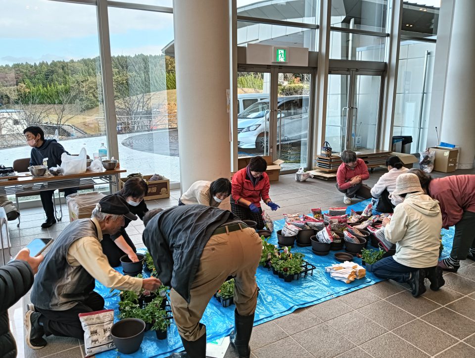 ・七尾田鶴浜仮設での寄せ植えカフェでは、田鶴浜のほか近隣の仮設住民にもお誘いをしたとのことで、団地横断的に住民の交流の機会となった。