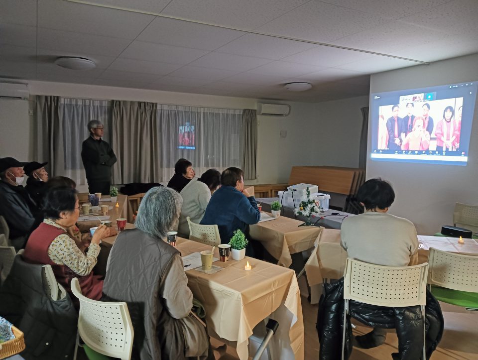 ・三井仮設集会所では、仮設住民に会いに在宅住民が訪ねてきてカフェで一緒にお茶を飲んだり、デイサービス送迎の介護職員が住民と一緒にお茶を飲むなど、地域の交流の場として利用していただけた。また郡山市と輪島市をオンラインで繋いで双方向クリスマスコンサートを開催し、画面を通じての交流もできた。