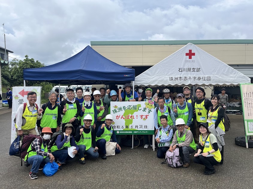 令和6年能登半島地震は能登半島に甚大な被害をもたらしました。愛知県社会福祉協議会及び県内社会福祉協議会が支援している石川県珠洲市災害ボランティアセンターでは、ゴールデンウイーク以降のボランティア数が減少しており、5月8日(水)より一般団体の受け入れを開始しました。これにあたり、本会ではボランティア活動者19名及び本会職員5名の合計24名を災害ボランティアとして派遣しました。珠洲市では、6月28日(土)に珠洲市災害ボランティアセンターの協力のもと、災害ボランティア活動を行いました。現地では依然として倒壊した家屋が多くあり、復興が遅れています。活動は3グループに分かれて、被災者に寄り添いながら家財の運び出し、屋内清掃、浜辺清掃などの活動を行いました。活動における雨天対策・熱中症対策についても丁寧に対応しました。活動後の岐路では、被災地の経済復興に寄与するため、商業施設や道の駅を訪れてお土産などを購入しました。また、8月24日(土)に活動報告会を実施し、ボランティアバス参加者、防災ボランティア、自主防災会関係者、市職員など30人が参加し、活動の振り返りや共有、今後の防災・減災活動について意見交換を行いました。本会では、引き続き令和6年能登半島地震への支援を続けていきます。