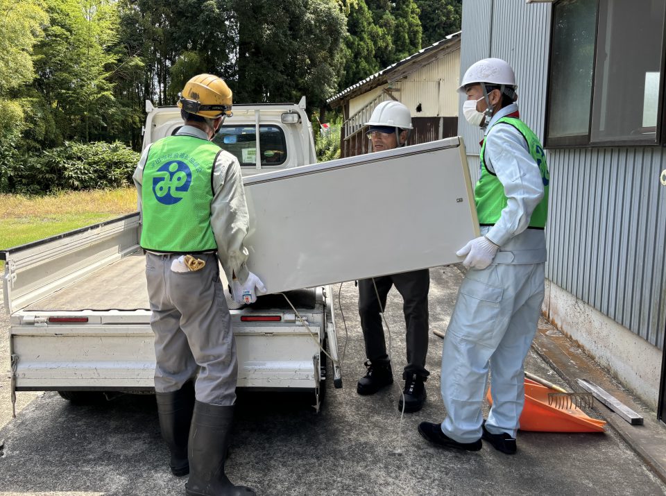 半壊の認定を受けた取り壊し予定の一軒家より大型家電や家具等を運び出し、軽トラックに積載し災害ゴミ仮置き場へ運搬しました。