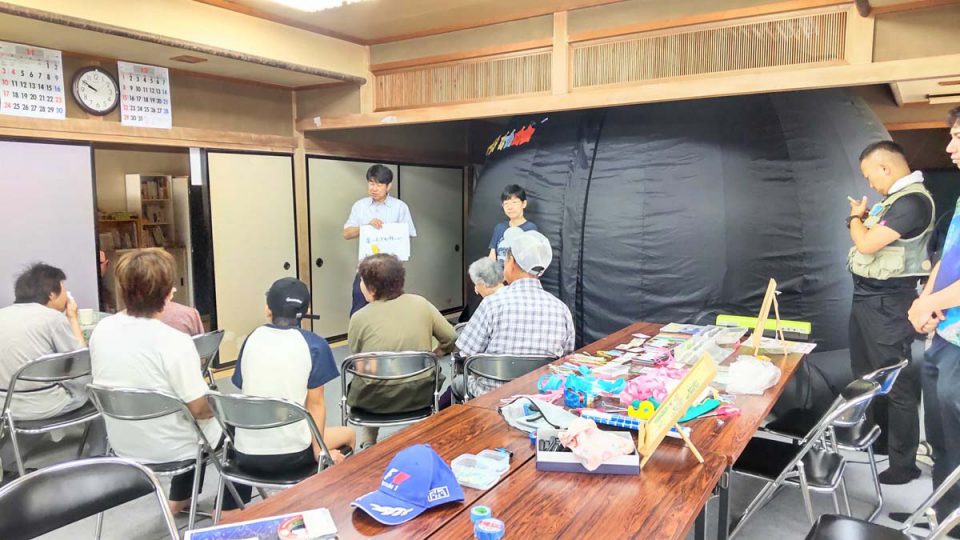 ☆7/22午前 石川県珠洲市「三崎公民館」4mドームのプラネタリウム2回・ワークショップ4種類 太陽望遠鏡・おなかの保健室 ボランティア:6名 参加者:子ども3名・大人15名