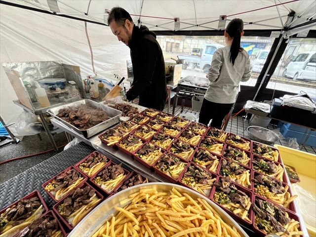 今年の冬は雪深く、10年に一度の豪雪が二度ありました。予想外の大雪でしたが急な中止を避けて現地に伺うと、早朝から仮設住民の皆さんが雪かきをしてくださっていました。「〇〇君、こっちこっちー!」と除雪した場所に車を誘導し、「あんたたちが滑ったらだめだからな」とみなさんが言ってくださり、忘れられない日となりましたが、現地の方との関係性が深いからこそ助けていただきましたが、関係が薄かったらこんなこともないと思うと、こんな時のための方途にも課題が残ります。冬場の道路状況は非常に酷で、運転への配慮、時間に余裕を持って現地入りすることや、四輪駆動車の手配、スノータイヤの準備、深夜移動を避けるなどが対策の一つとなりました。住民の皆さんのおかげで、大雪に見舞われても活動はさせていただけましたが、備品のテントは雪の重みで潰れましたし、水道も凍って使えませんでした。こういう時の対策を講じていくのも今後の課題と取り組みの一つとなります。他団体の活動は全てキャンセルとなっていました。現地で一人暮らしの人が多く「何日も人と話す機会がない」と言います。そのような方々を孤独にさせないことは大きな課題のひとつで、地域の有力者(区長さんなど)と連携して働きかける取り組みが必要となりますが、地域に配布するコミュニティ誌などに我々の炊き出しのお知らせなどを組み込んでくださっており、協力して活動を進めさせていただいておりますが、継続して、安心して暮らせるようになるまで続ける必要があると思います。今後、暖かくなると炊き出しに関しても、食品衛生管理の観点から、出来上がった食材の保管、いかに安全にお渡しできるかということも課題となります。また、最近の食材・資材の高騰も考慮して経費の計上なども課題に挙げられます。取り組みとしては、食材に関しては、肉などはブロックで購入し、自前でスライスして単価を下げ、野菜なども日持ちのするものは特売日に買い置きするなど工夫をします。ウィルス対策も食の安全を考慮しノロウィルスなどに対応した消毒を使用するなどの対策を講じています。地域の住民と連携をして、安全で安心な炊き出しを提供し、被災者の方々の心の支えとなれるよう取り組んでまいります。ここまで1年3ヶ月続けさせていただきましたが、コミュニティ支援や傾聴活動、見守り活動は長いスパンで行うことが重要な課題となります。