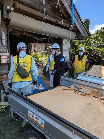 もう1件は、高齢のご夫婦と娘さんの3人世帯のお宅で、被災により雨漏りした家屋の2階の片付けや処分を行いました。水を含んだ重い畳を何枚も下ろし、処分場に持って行きました。物が散乱していた部屋が、不要なものを処分し、そのあと敷いたござを水拭きしてきれいになったとき、ご家族から「これで先の見通しがたった」と涙ぐみながらお話をされたことが大変心に残りました。