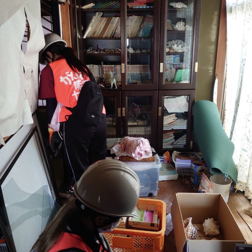 本助成金による成果は以下の2点が挙げられます。1点目は現場作業の成果です。今回は、2 軒の家財搬出・家屋整理を行いました。そのうち1軒は 2 階建ての一軒家で、家財等を 2 階から 1 階へ運び出す作業は杖歩行かつひとり暮らしの住民さんにとって困難な作業でした。また、依頼者である住民さんは、亡くなられた息子さんの部屋での作業にこれまで手をつけられずにいました。そのため、家財を整理する際には、住民さんに負担がかからない範疇での丁寧な確認を心がけ、ひとつひとつのものに詰まった想いに時間をかけて寄り添いました。作業中には「思い出がこんなに見つかって嬉しいわ、ありがとう」と整理された家財を手に取り喜ばれ、住民さんに寄り添いながら迅速丁寧に行う家財整理は心の整理にも繋がるのだと実感しました。そして、住民さんと共に整理した家財の中に私たちにお譲りいただいたものもあり、「捨てるより誰かに受け取ってもらえた方が嬉しい」と新たな繋がりが目に見える形として残ることで住民さんの自己有用感が高められた点は大きな成果であったといえます。2 点目は訪問足湯による成果です。今回は 2 軒で足湯を実施しました。これまでの活動で 2 回訪問足湯を実施したお宅に訪問し、今回も夫婦 2 人に足湯を行いました。夫婦揃って以前おれんじぴーすが足湯を行ったことを覚えていてくださり、今回はこれまでご自身のことをあまり話されていなかった奥様から奥様自身のお話を伺うことができました。このことから継続的に自宅に訪問し、リラックスした状態での足湯や談話を行う中で慎重な信頼関係を築くことができたといえます。また、会話中には被災当時の自宅の様子を話される場面も多くあり、話すことで気持ちの整理に繋げられたと考えています。そして、連携団体が運営している民間ボランティアセンターのチラシをお配りし、家財整理のお手伝いについて説明した際には、2階の地震で壊れたタンスを搬出したいという新たなニーズを発見しました。支援が必要であっても頼る場所を見つけられず、困りごとを抱えた状態で生活されている住民さんがいらっしゃることを知り、未だに支援が行き届いていないことを実感しました。そのため、継続的な訪問足湯で得た信頼関係が住民さんのリラックスできる時間を創出し、その中で発見した潜在ニーズを支援団体へつなげることができたのは大きな成果でした。