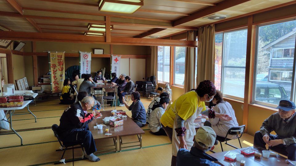 炊出し活動は、町内の大半の住民が仮設住宅や市外に避難して地域がバラバラになり集まる機会や話し合う機会も少なくなっている時に、人が集まり話すきっかけとなっている。