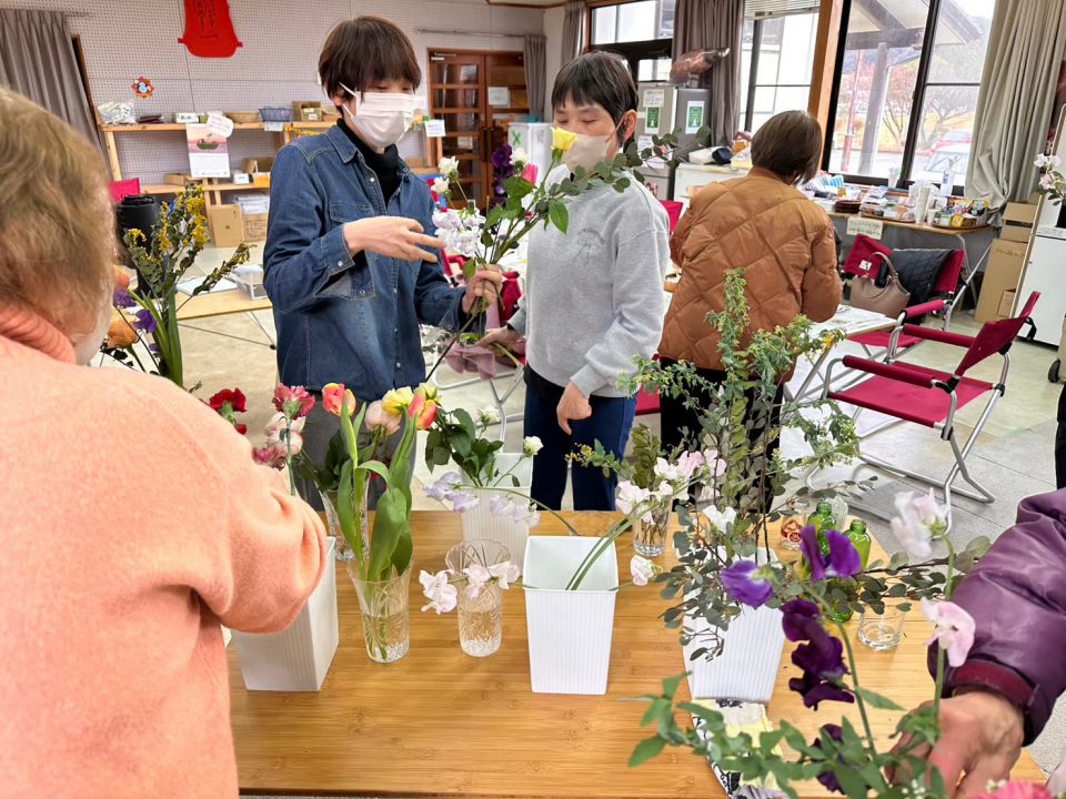 また、被災者向けのサロン活動として、フラワーアレンジメントのイベントの中で、被災者の皆様と直接お話しする機会を設け、心配事や現状についてのご意見を伺いました。避難生活の長期化による疲労感や復興の難しさ、花を触れる楽しさ、嬉しさを感じることで気持ちが落ち着き、普段話しにくいことを口にする方もおり、笑顔が広がる様子が多く見られました。
