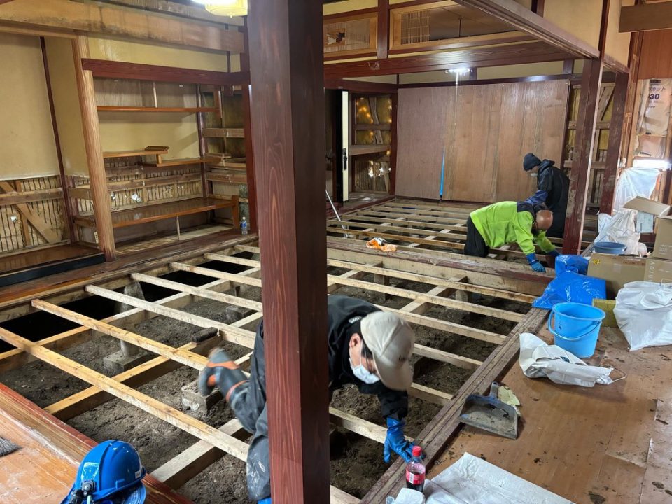 家主では対応困難な床下の泥除去・洗浄を完了(1世帯)、専門家を繋ぎ現実的な復旧プランを提案、それに基づき床下、壁の泥除去・消毒を実施した。