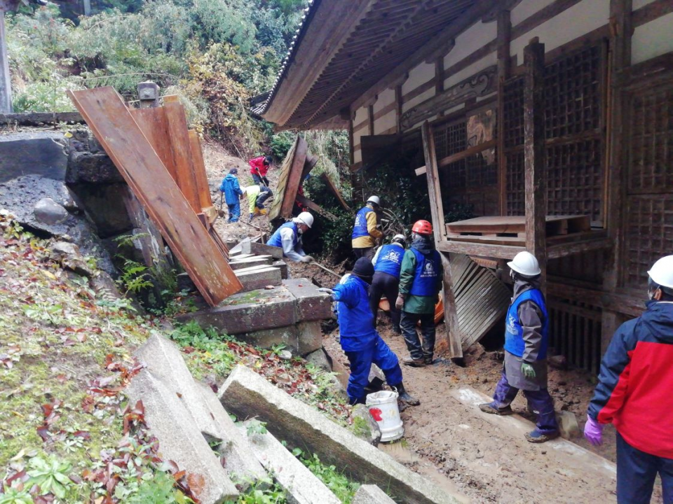①12月6~8日 輪島市 25名 1軒 地震で損壊後、豪雨で土砂が流入した神社境内での土砂撤去等