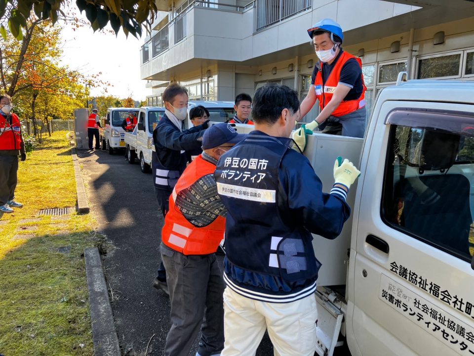 令和6年11月10日から12日の3日間、伊豆の国市民、災害ボランティアコーディネーター伊豆の国、伊豆の国市社会福祉法人連絡会所属福祉施設職員、行政職員の協力をいただき、能登町へ災害ボランティアとして派遣事業を実施。被災地の復旧の一助となるよう支援活動を行いました。被災地支援に長く関わる河津桜ボランティアセンター代表玉木氏に同行いただき、被災地における活動の注意事項についてのアドバイスを受けながら行程を進めることで、参加したボランティアも安心して活動を行うことができました。