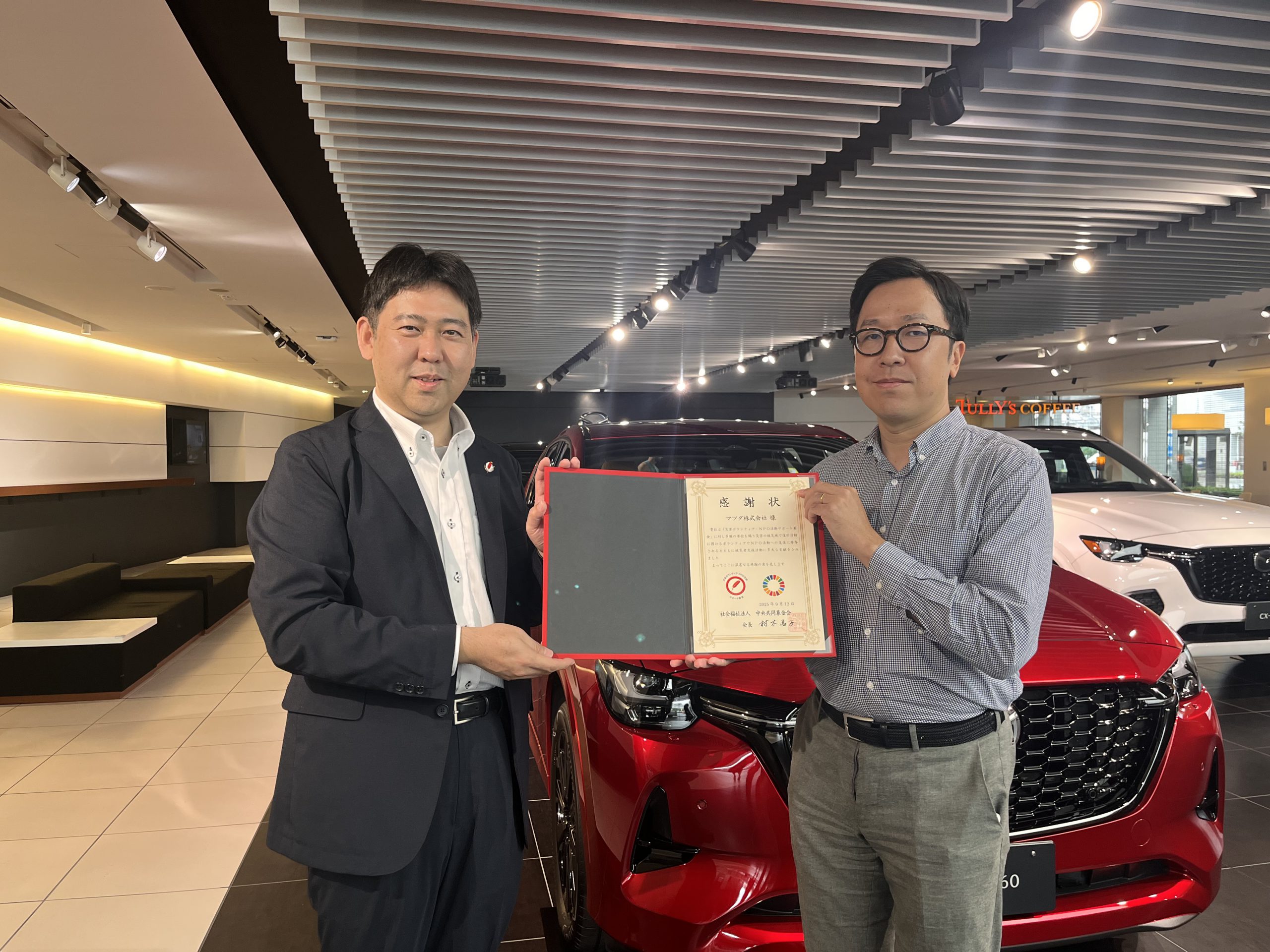 このほどマツダ株式会社本社にて、能登半島地震をはじめとする被災地支援の使途報告を行うとともに、感謝状をご贈呈しました。
