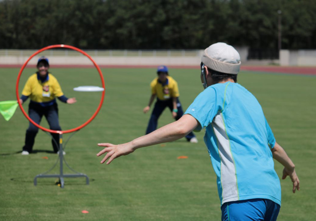 「フライングディスク」というツールを活用して障害者や高齢者が生涯にわたって運動を楽しみ、心豊かに暮らすことができる環境づくりを図り、自立と社会参加を促進し共生社会の実現に向けてフライングディスクの競技会及び公認指導員の養成講習会等を実施します。