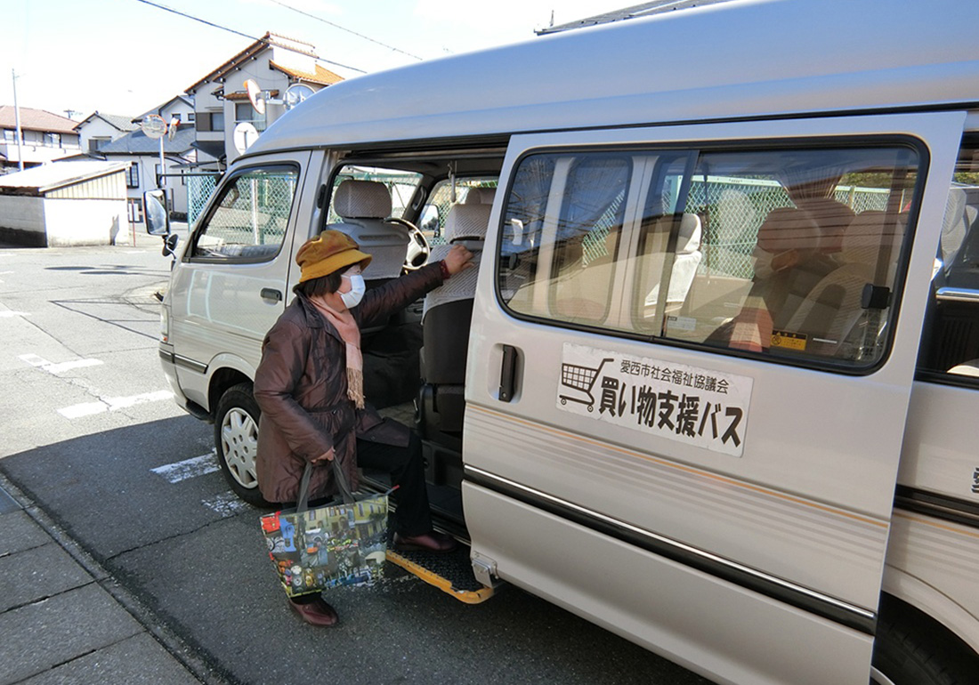 愛西市では、公共交通機関が限られており、自家用車を手放した方や、ひとり暮らしの方にとって、買い物支援バスは生活を支える大切な足となっています。 愛西市では、ひとり暮らしの高齢者や買い物に不便を感じている方々を対象に、近隣の乗降場所からお店までを送迎する「買い物支援バス事業」を実施しています。