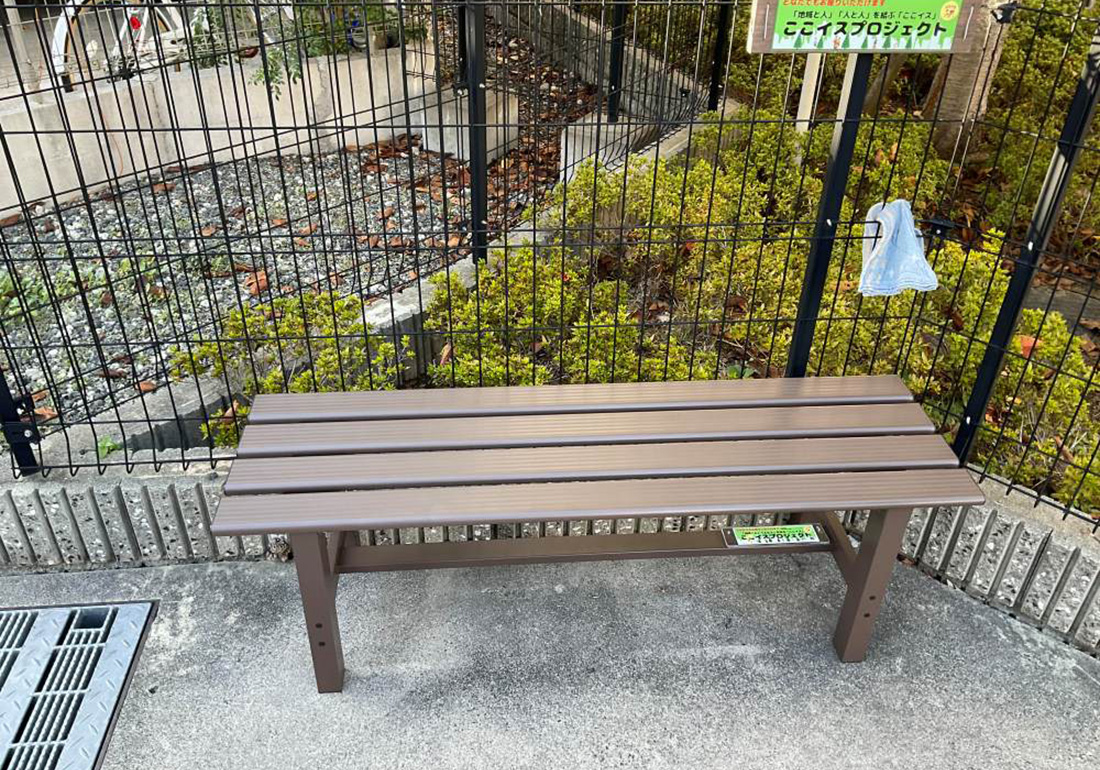令和4年度からテーマ型募金を活用して“ここイスプロジェクト”を実施しています。疲れた時に休むだけでなく、地域の新たなコミュニティの場となることを目指した置きイス活動です。現在、施設前やバス停、公共施設など四條畷市内に設置しています。今後も地域の方と一緒に活動をすすめていきたいと考えています。