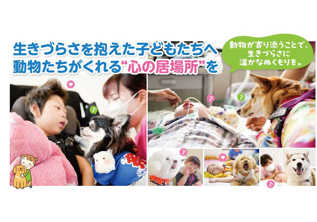 医療ケアが必要な重度障がい児や発達障がい児、不登校・ひきこもりの子どもたち等に、セラピードッグとのふれあいを届けています。犬たちとのふれあいは、子どもたちの心を和らげ、自己肯定感を育むきっかけとなります。生きづらさを抱える子どもたちが、安心と癒しに包まれた時間を過ごせるように、ご支援をお願いします。